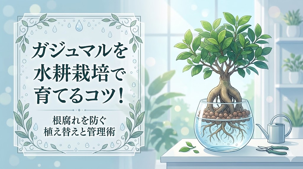 「幸せを呼ぶ木」として人気のガジュマル。おしゃれなガラス瓶に入れて水だけで育てられたら素敵ですよね。でも、いざ挑戦しようとすると「根っこが腐って枯れてしまわないか」と不安になる方も多いはず。土を使わない水耕栽培は、部屋も汚れず清潔ですが、実はちょっとした「コツ」を知らないと失敗しやすいんです。この記事では、ガジュマルを元気に水耕栽培で育てるための具体的な手順と、トラブルを防ぐ管理の仕方をわかりやすくお伝えします。