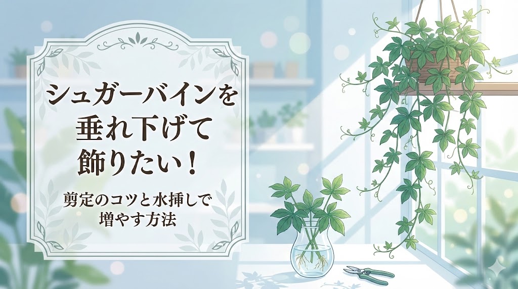 小さくて可愛い葉っぱが連なるシュガーバインは、お部屋に少し緑があるだけでパッと雰囲気を明るくしてくれます。でも、ただ置くだけではなく「おしゃれに垂れ下げて飾りたい」と思っている方も多いはずです。ツルが伸びすぎて形が崩れたり、もっと数を増やしてお部屋をジャングルのようにしたかったりする時、どうすればいいか迷いますよね。この記事では、シュガーバインの形を綺麗に整える切り方や、切った枝を使って簡単に増やす手順をわかりやすくお伝えします。